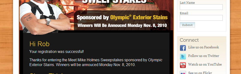 Olympic.com "Meet Mike In New York City Sweepstakes" Confirmation