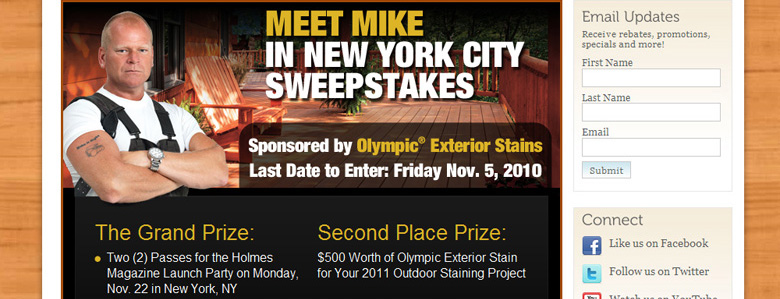 Olympic.com "Meet Mike In New York City Sweepstakes" Banner